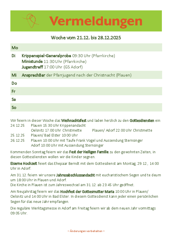 Die Römisch-Katholische Pfarrei „St. Elisabeth“ besteht aus 7 Gemeinden und erstreckt sich von Ronneburg bis nach Kahla. Die Pfarrei zählt...